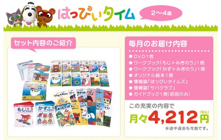 はっぴぃタイム」は、、主婦の友社の雑誌通販や幼児向け通販カタログ「TOMA・TOMA」などでおなじみのベルネージュダイレクトが、右脳開発38年の実績を誇るしちだ・教育研究所と共同開発した教材です。