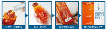 ビタミンC誘導体」は変質しやすく、配合が難しい成分ですが、ローションとパウダーの2剤式にすることで実現しています。